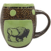Single 14 Oz. Mug with Spoon with Buffalo Design and Avocado Green, Blue, Coral, or Yellow Glaze.