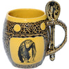 Single 14 Oz. Mug with Spoon with Chimp Design and Avocado Green, Blue, Coral, or Yellow Glaze.