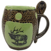 Single 14 Oz. Mug with Spoon with Elk Design and Avocado Green, Blue, Coral, or Yellow Glaze.