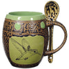 Single 14 Oz. Mug with Spoon with Hummingbird Design and Avocado Green, Blue, Coral, or Yellow Glaze.