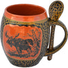 Single 14 Oz. Mug with Spoon with Giraffe 1 Design and Avocado Green, Blue, Coral, or Yellow Glaze.