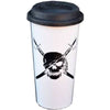 15 Oz. Double Walled Tall Travel Mug in Patched Skull and Crossbones design.