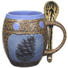 Single 14 Oz. Mug with Spoon with Pinecone 2 Design and Avocado Green, Blue, Coral, or Yellow Glaze.