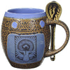 Single 14 Oz. Mug with Spoon with Praying Goddess Design and Avocado Green, Blue, Coral, or Yellow Glaze.