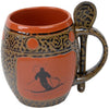 Single 14 Oz. Mug with Spoon with Skier Design and Avocado Green, Blue, Coral, or Yellow Glaze.