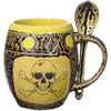 Single 14 Oz. Mug with Spoon with Skull -N- Crossbones Design and Avocado Green, Blue, Coral, or Yellow Glaze.