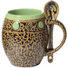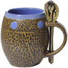 Single 14 Oz. Mug with Spoon with Southwest Design and Avocado Green, Blue, Coral, or Yellow Glaze.